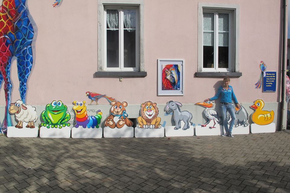 Auf dem oberen Bild Links ist die Künstlerin der Geburtstafeln Claudia Küng |